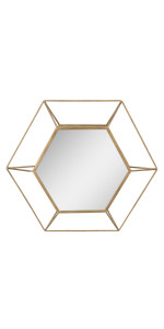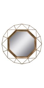 Stonebriar's stylish mirror features a unique geometric wire metal frame with an antique gold finish & an octagon mirror with crystal clear reflection